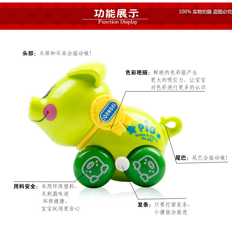 发条淘气小猪儿童益智上链玩具摇头摆尾宝宝男孩卡通小猪0-3岁