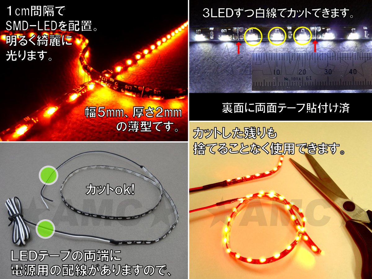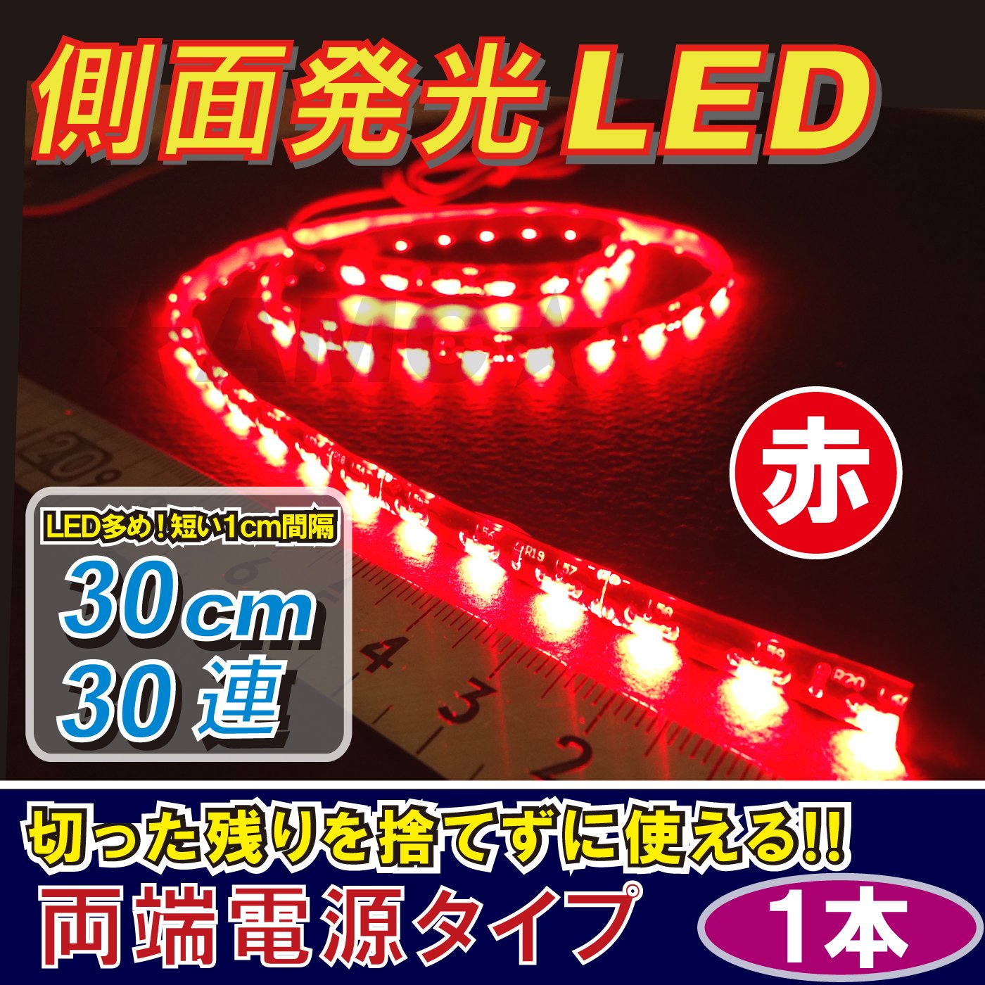 Both ends of the power supply waterproof red in AMC side-emitting LED tape 30cm30 series LED red one both sides wiring can be used to not discard the rest ...