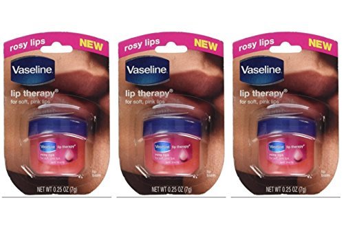 Vaseline Lip Therapy, Rosy Lips, 0.25 Oz Travel Size (Pack of 3)