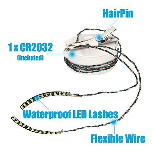 - Waterproof LED lashes, Flexible wire, Lightweight. Unique clip can be attached behind head hair or clothes.