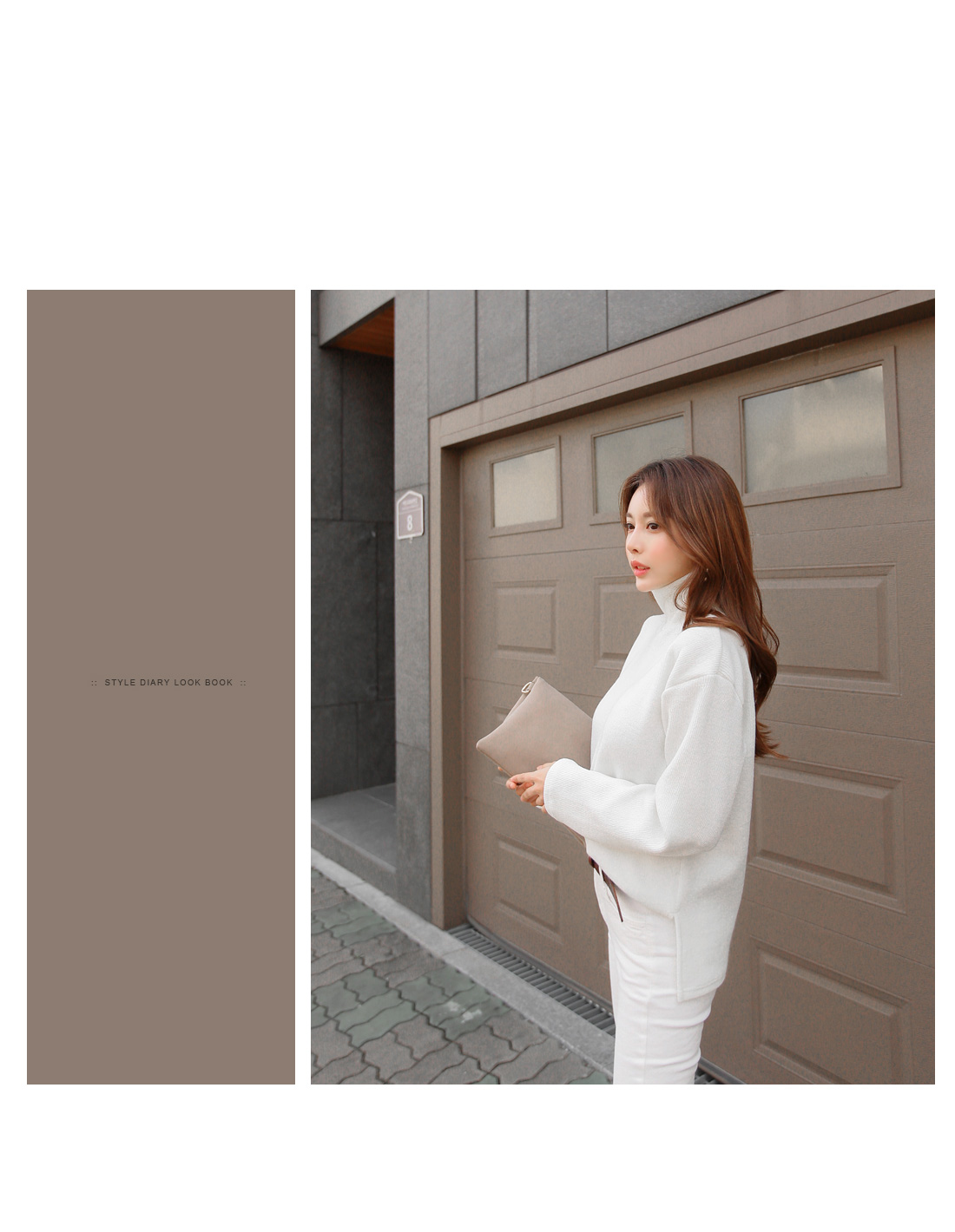목을 감싸주는 하이넥으로 심플한 디자인이 돋보이며,
