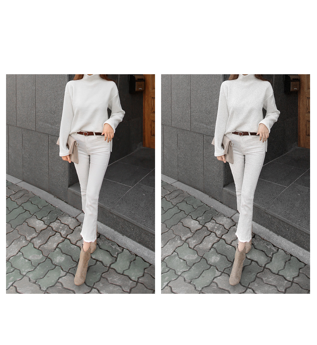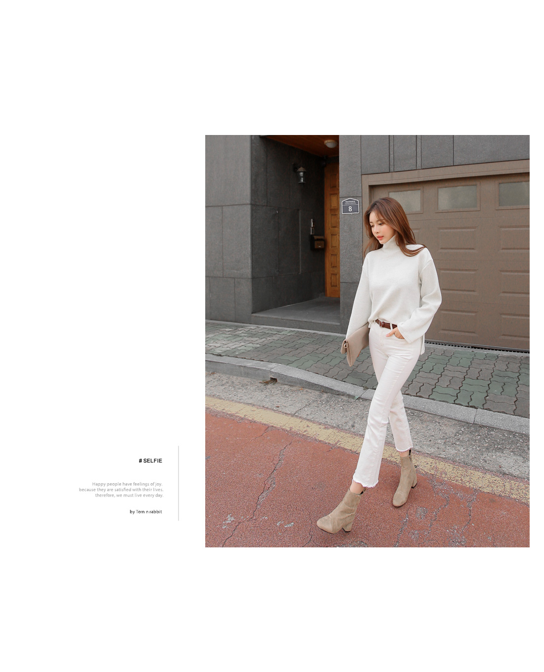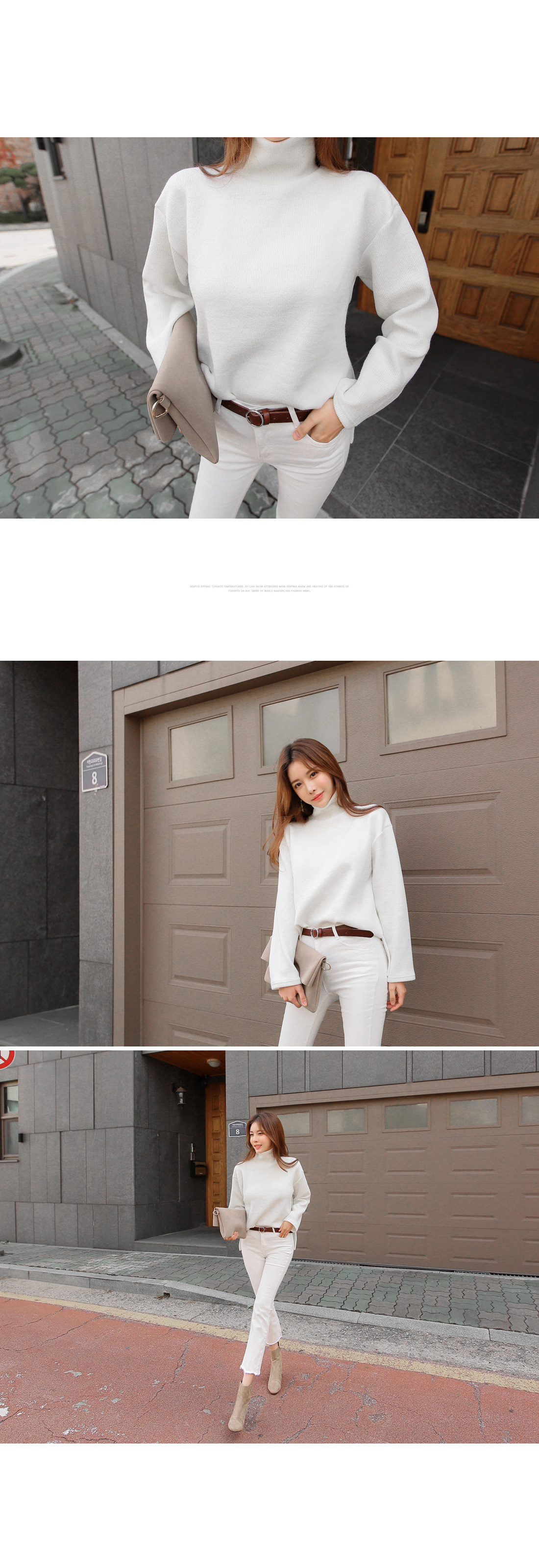 캐주얼하면서도 모던한 분위기가 느껴지는 폴라 니트 느낌 티셔츠에요.