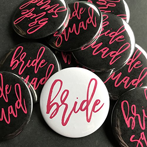 Bride Squad, Bride Squad Buttons, Bachelorette Party Buttons, Hot Pink and Black, Buttons Pins (Set of 10)