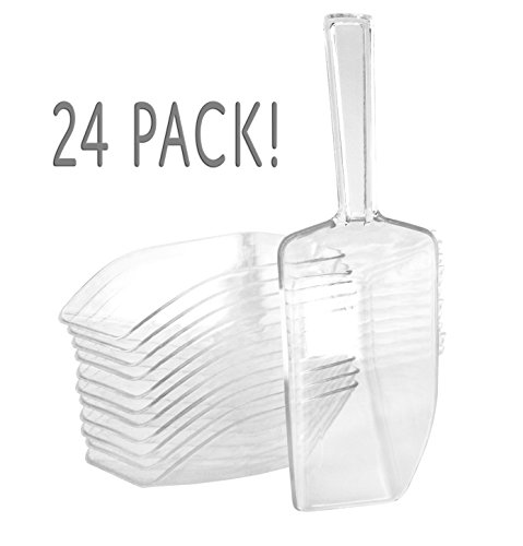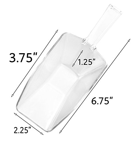 Studio : Cornucopia Brands Publisher : Cornucopia Brands Binding : Health and Beauty Product Description 6.75" Medium Clear Acrylic Plastic Scoops (24-Pack); Use for Candy Bar, Snacks, Dry Goods, Popcorn, Buffet Party Serving More Spice up your candy bar or buffet at your next party with these clear acrylic scoops. Or make your kitchen pantry dry goods storage more functional with a scoop for every canister. The possibilities are endless with these clear acrylic scoops. They are even great in the bathroom for bath salts or in the utility room for pet food. Stick one in the freezer for scooping ice, and set aside some for your picnic cooler. Choose from small, medium large size bundles so you can measure ¼ cup, ? cup ½ cup. The sizes of each one are as follows: Small: capacity up to ¼ cup; length with handle 5 ¼ inch long, 1 ¾ inch wide, ¾" deep, 3-inch long scoop only Medium: capacity up to ? cup; length with handle 6 ¾ inch, 2 ¼ inch wide, 1 ¼" deep; scoop portion 3 ¾ inch long Large: capacity up to ½ cup; length with handle 7 ¼ inch, 2 ½ inch wide, 1 ½ inch deep; scoop portion is 4 ½ inch long Quantity in package: 24 pieces same size. 0 |