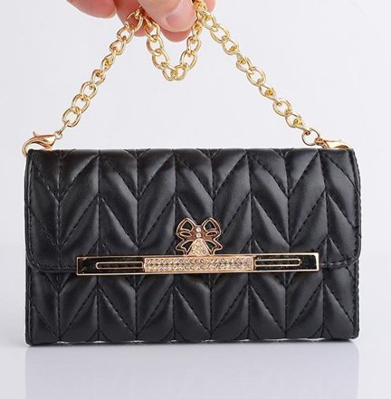 For iPhone 6S,iPhone 6S Case,iPhone 6S Leather Case,Candywe [Black] Elegent Women Handbage Design Wallet Cover for iPhone 6/6S 4.7" With Strap