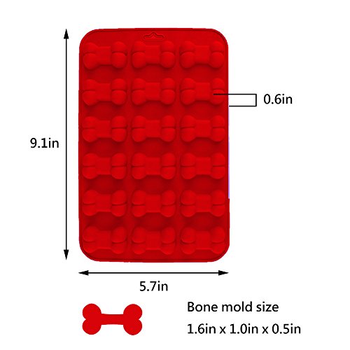 There are 10 paws on each paw mold, and 18 bones on each bone mold. The size of each paw mold are 8.7" x 4.3" x 0.8"/ 22cm x 11cm x 2cm. The size of each bone mold are 9.1" x 5.7" x 0.6"/ 23cm x 14.5cm x 1.5cm. Easily release Chocolate Candy Figures or ice cube Figures with a simple twist and slight push, Silicone Molds won't crack or break like stiff plastic molds: Easy to fill, easy to use, easy to clean. Note: After baking, please remove the molds out of the oven, and place in the baking rack until the molds completely cooled. Please do not use cool water to clean immediately when it's just taken out of the oven. Just to extend the service life. Do not use in gas and fire. Do not use knives or other sharp tolls on silicone molds and avoid stress, pull. Package include:1 x Paw Mold and 1 x Bone Mold. 0 |