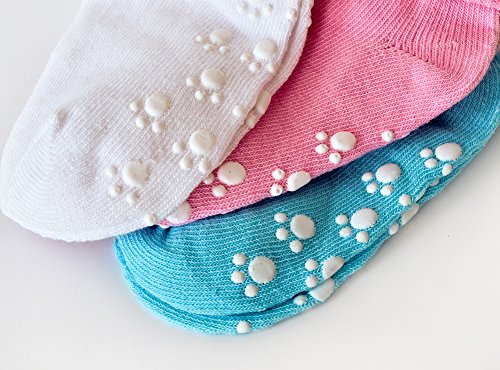 BABY NON SKID SOCKS ARE VERY SOFT FOR TODDLER INFANT WALKER. material: 95% Cotton, 5% Nylon, these baby anti slip socks will keep little toes warm in style. In addition, the bottoms of the socks are beaded with non-skid material for your child's safety