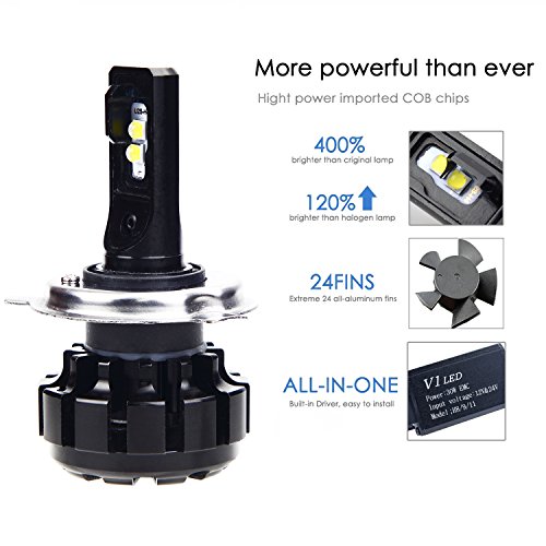 Led Headlight Bulb Conversion H4 (9003) , Extremely Brigh 80W 9600lm 6000k cool white, 2 Yr Warranty
