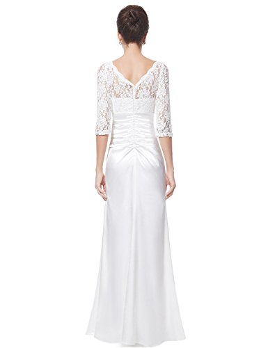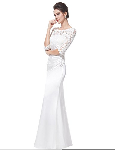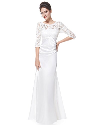 This stunning evening dress features a figure flattering ruched satin waist and a 3/4 sleeve lace bust. The formal floor length of the dress coupled with the classic black color makes this dress perfect for any black tie affair; it has also been very popular with mothers of the bride and groom.Feature