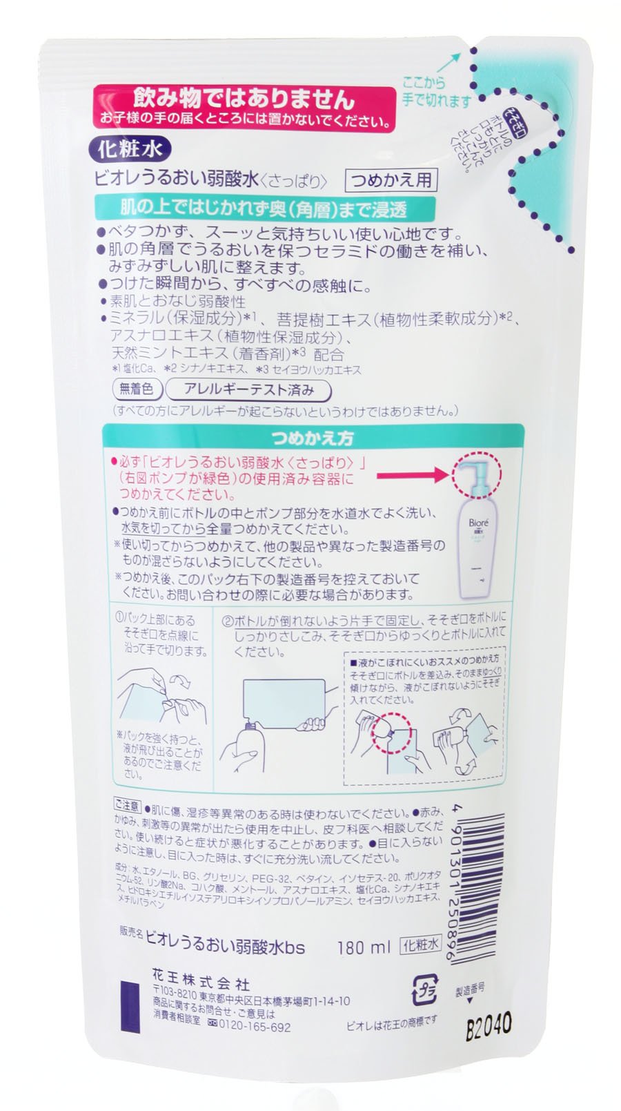Biore URUOI JYAKU-SANSUI SAPPARI acescence-water toner - Refill 180ml (Japan Import)