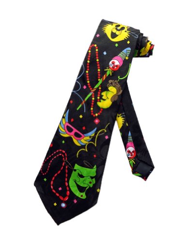 -. Binding : Apparel -. Brand : Steven Harris -. ClothingSize : one size -. Color : Black -. Department : mens -. Feature : Tie depicts symbols of the Mardi Gras celebration including colorful masks and beads on a black background / Standard size tie for men: 56 inches long and 4 inches wide at its base / 100% polyester micro-fiber with a silk-like feel -. ProductGroup : Apparel -. ProductTypeName : ACCESSORY -. Size : One Size -. Title : Steven Harris Mens Mardi Gras Fat Tuesday Necktie - Black - One Size Neck Tie