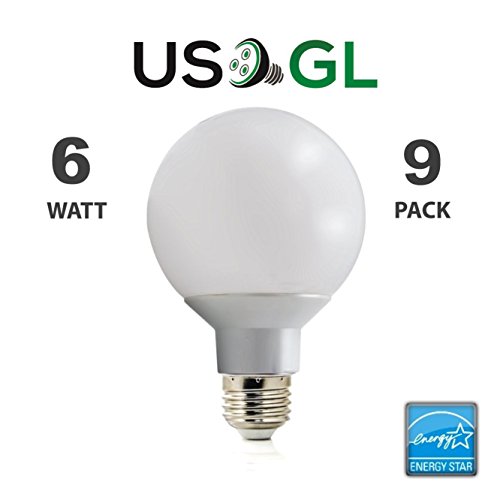 9 Pack LED G25 Vanity Globe Light Bulb - DIMMABLE - 6W (40 Watt Equivalent) Warm White (2700K) Shatter Resistant Energy Star E26 Base 450 Lumens