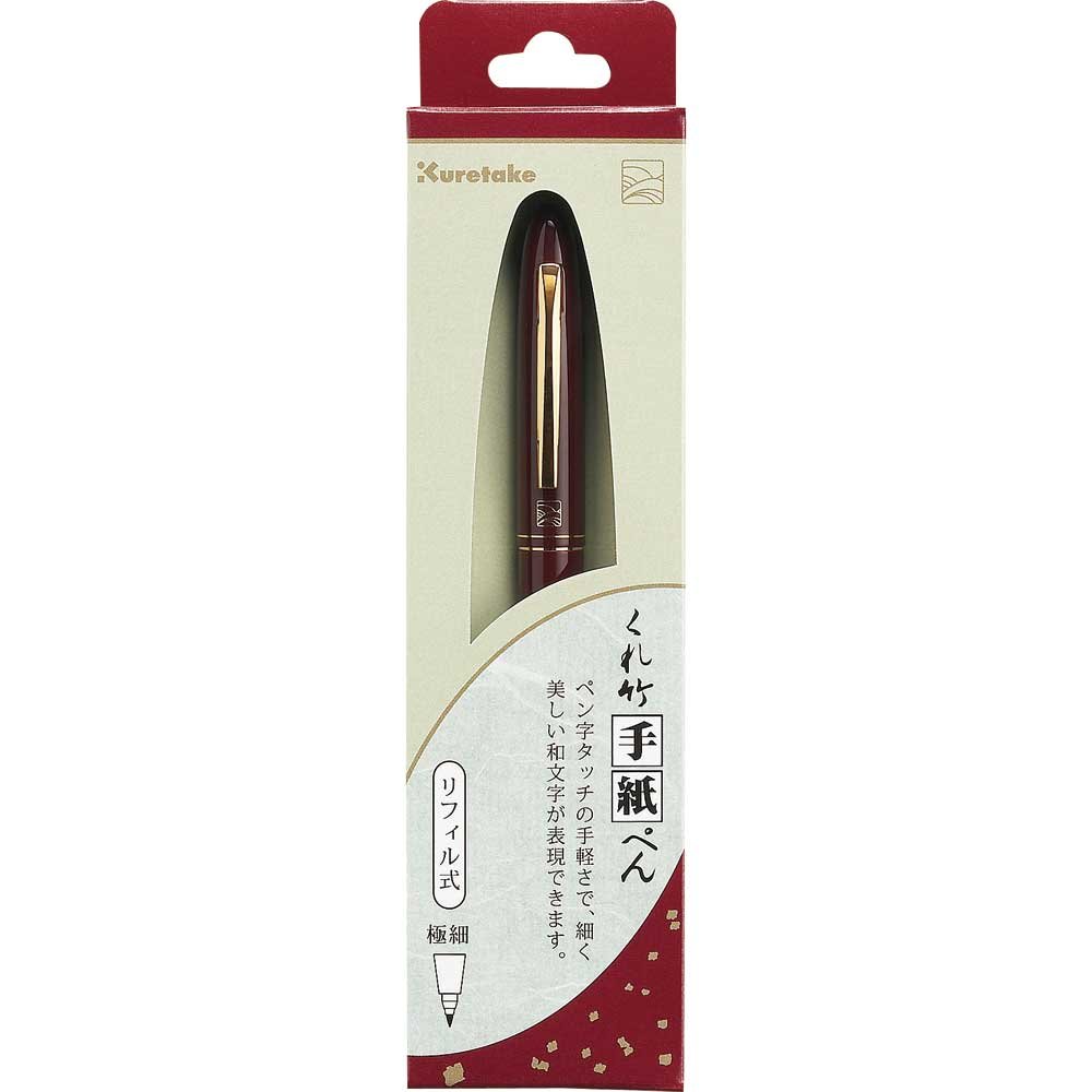 Kuretake Tegami Refillable Letter Pen - Super Fine Lettering Tip - Rouge Body