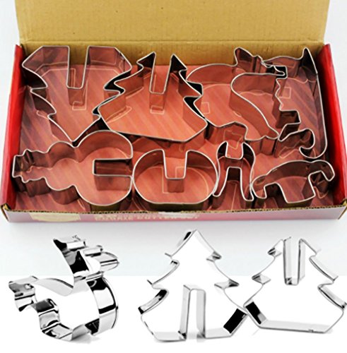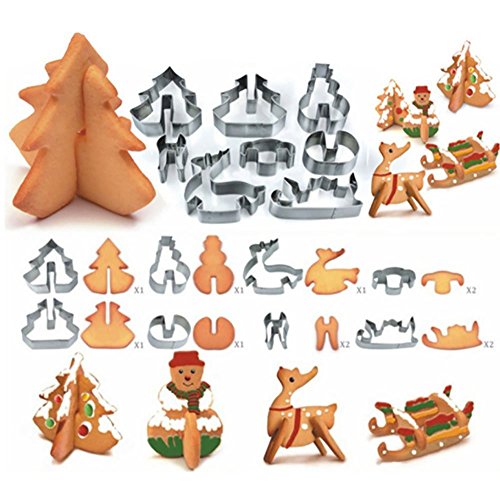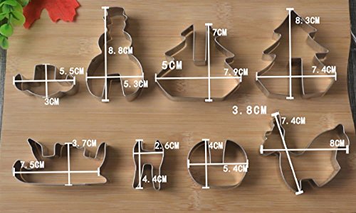 DUOJIA 3D Christmas Cookie Cutters Set Stainless Steel Food Grade - Snowman, Christmas Tree, Reindeer, Sleigh 8pcs Christmas)