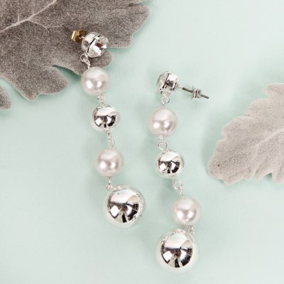 큐빅 볼 진주 롱 귀걸이