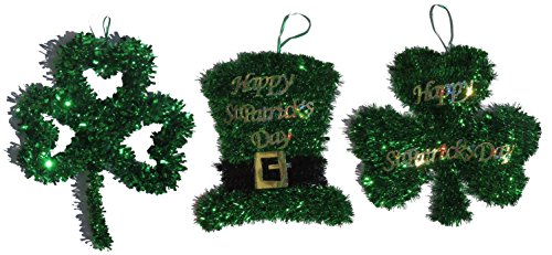 St. Patrick's Day Tinsel Leprechaun Hat and Shamrock Wreath Deluxe Decoration 3 Piece Set
