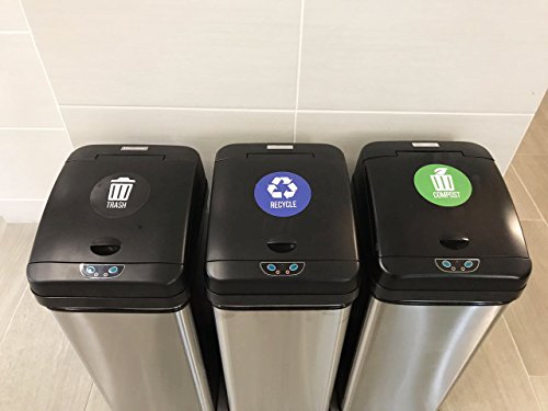 - Set of 3 Decals – Includes 1 Recycle sticker in blue, 1 Compost sticker in green, and 1 Trash sticker in black for easy identification. Simply peel and stick the each on the desired bin and smooth out any air bubbles with a credit card or flat object. Perfect as an indoor or outdoor addition to your home, office, company, work, commercial event, apartment, studio, loft, hotel, gym, room, bars, management center, hospital, convalescent home, garden, etc.