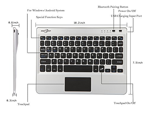 BATTOP Slim Wireless Bluetooth Keyboard with Multi-Touchpad Built-In Unique Autoshrink Hidden Stands for Windows, Android 4.0 and Above System Tablet/PC/ Smart Phone