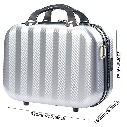 SAVORI 14 Inch Hardshell Travel Cosmetic Carrying Case ABS Hard Shell Mini Suitcase Portable Makeup Case (Silver)