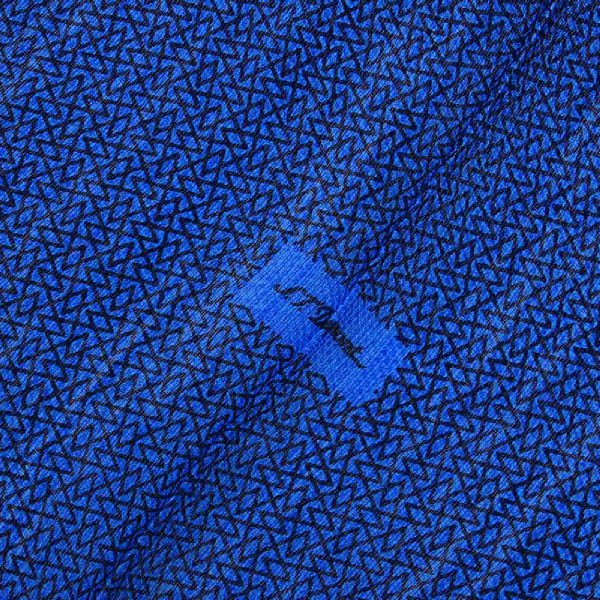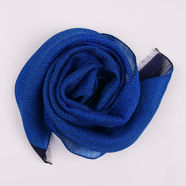 기하학 모티브와 깔끔한 컬러 매치가 돋보이는 간절기용 울실크 스카프.