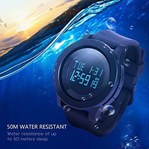 -. Feature : ★SPORT WATCH★: the Multifunctional Black Mens Big Face Digital Watches; with a Big Black Dial ; Designed for Men and Women; Serves as Good Gift for Birthday or Festival. / ★MULTIPLE FUNCTIONS★: This Black Digital Watch Has Various Functions: Double Time Setting, Waterproof, Alarm Clock, Stopwatch, Countdown, 12/24 Hours, Week and Calendar, EL Back Light; Perfect for Sports and Daily Wear. / ★WATRE RESISTANT To 164 Feet★: with High-transparency Resin Mirror and Stainless Steel Back, This Sport Watch Possess Superior Water Resistance and Can be Worn When You are Showering and Swimming. Please DO NOT Operate the Button in the Water. / ★EXQUISITE DETAILS★: High Quality Movement Ensures the Accuracy of the Time Keeping; Hard and Durable PC Material Shell; Soft PU Watch Band; Stainless Steel Watch Band Buckle; EL Luminous Film Ensures the Clarity of Back Light Time. / ★EXCELLENT SERVICE★: HiWatch is a Professional Seller in Selling Sport Watch, We Offer Premium after-sale Service. A. 2 Years Warranty. B. 2 Months Hassle-free Return Policy. C. Seller Pays for Return if Item is DOA or not as Described. Fulfilled by Amazon with Fast Shipping.