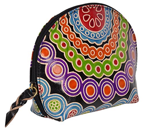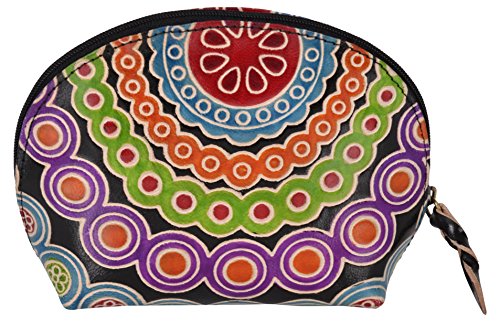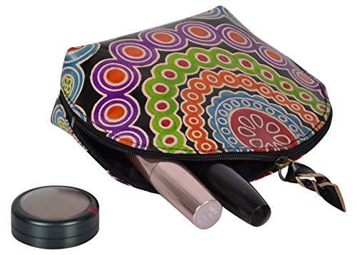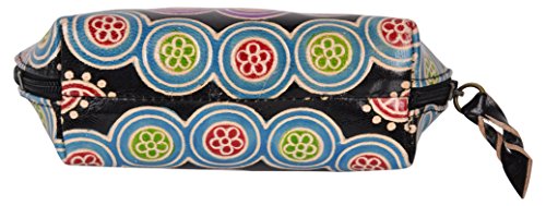 SAAGA Hand Painted Leather Makeup Pouch Cosmetics Bag Makeup Organizer Travel Bag Toiletry Kit in Multi-Colored Design / Handmade : 6x4x2 inches (LxBxH)