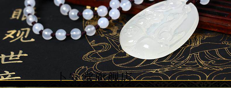 开光属龙人的吉祥物【祥安阁狗兔添福】白玉髓吊坠护身符