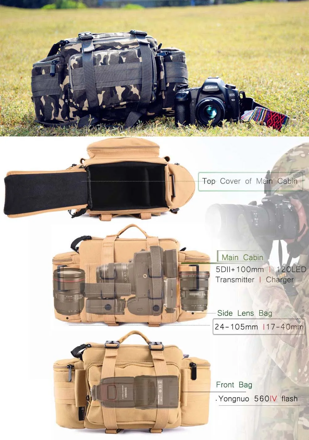 Capacity:1*DSLR+2*Lens+1*Flash+1*Tripod+Other Accessories