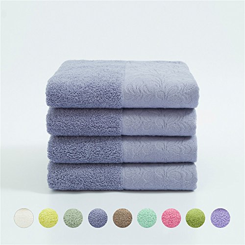 Lotus Karen 4-Piece Jacquard Environmental A Cotton Face Towels Washcloths Hand Towel (Blue-Gray)