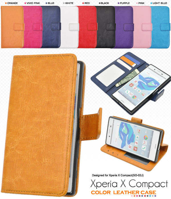 | カラフルな8色展開!Xperia X Compact(SO-02J)用カラーレザーケースポーチ |