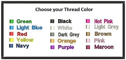 -. Feature : Size 5" x 2" / Fabric Background: White, Black, Blue, Red, Green, Gray, Orange, / Embroidery Thread: Black, White, Royal Blue, Navy Blue, Red, Forest Green, Pink, Purple, Orange, Yellow / Iron On Patch, Can be Sew on - Just let us know / Personalized just for you, Choose your text, background, font and thread color