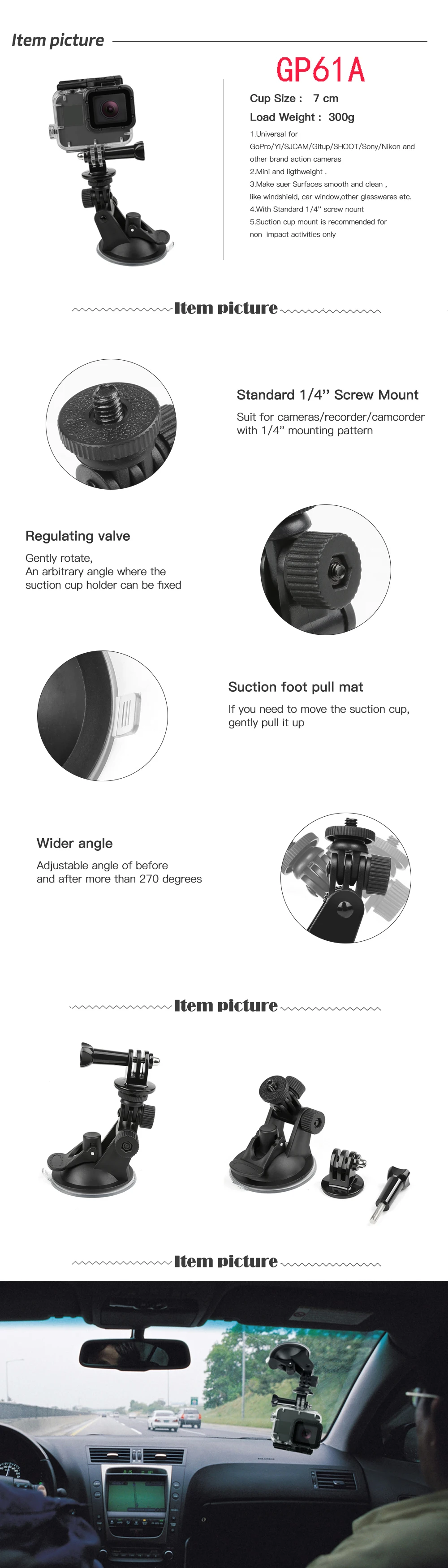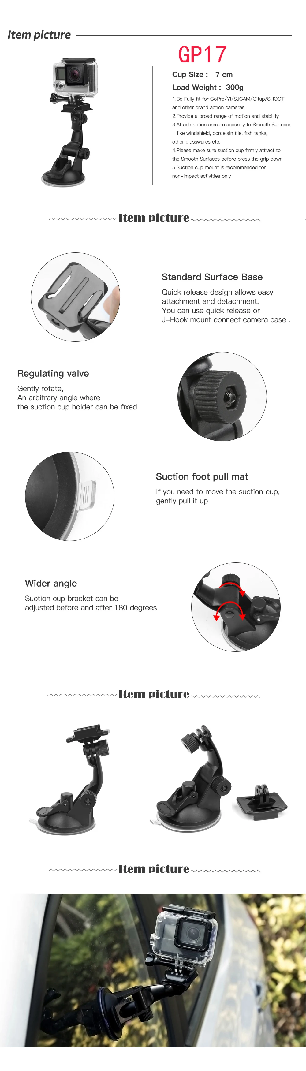 Compatible Action Camera Brand:NIKON,SONY,Garmin,EKEN,SOOCOO,GoPro,Sjcam