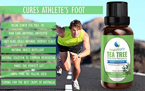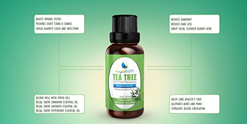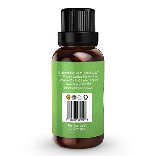 - Feature : Regal Earth Tea Tree Oil Provides AMAZING HEALTH BENEFITS: Cures Acne, Heals Wounds, Rejuvenates Skin, Soothes Scalp, Provides Relief From Itching. It Is The BEST NATURAL RELIABLE ANTISEPTIC For Cuts, Burns, Insect Bites, Stings, Boils Or Vaginal Infections. It May Also Treat Cough, Pulmonary Inflammation And Kill Fungus And Bacteria. / Just A Few Drops Are Very Effective For MASSAGE, For Curing ATHLETE's FOOT And Deep Relaxation. Great HAIR CARE SOLUTION And Anti Hair Loss Stimulant. Works As A Fantastic Antiviral, Antiseptic And Insecticide Natural Solution, KILLS INSECTS. Blends Very Well With The Regal Earth CINNAMON Essential Oil, LAVENDER Essential Oil And PEPPERMINT Essential Oil. It Has A Fresh, Woody, Refreshing Aroma. / SUPERIOR QUALITY 100% PURE Eucalyptus ESSENTIAL OIL - we use only the best undiluted, premium quality, therapeutic grade essential oil. All health benefits are preserved during the high care steam distillation process, while no chemicals, toxins or fillers are added. Try it once, and you'll see we're different than competitors who dilute the oil, and in the process, also dilute the benefits / What makes Regal Earth bring the best oil that Earth has to offer? We invest a lot of time and money into acquiring only exceptional crops that often cost twice as much than the average, only from renowned locations around the globe. We hire people with at least a decade of experience in Extraction Methods, so when you buy from us, you know you're getting the highest possible standard of essential oil / All Regal Earth oils come with a No Love-No Hassle Money Back Guarantee! Applies to all our Essential Oils: Lavender, Peppermint, Sweet Orange, Eucalyptus, Tea Tree, Cinnamon. But YOU'RE GUARANTEED TO FALL IN LOVE with our quality, packaging and delicious aromas