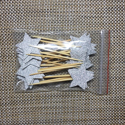 TooMeeCrafts Double Sided Star Topper Silver Glitter Star Wand Cake Topper Cupcake Topper Wedding Cupcake Toppers Set of 24