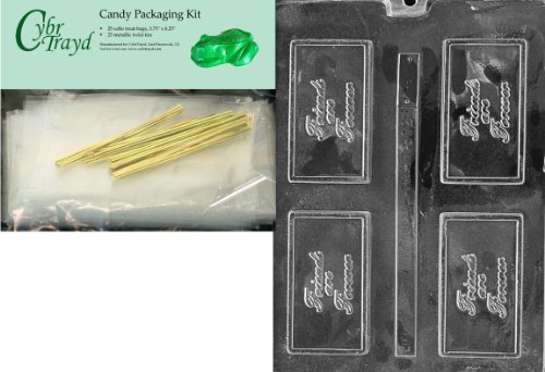 Cybrtrayd "Friends are Forever" Business Card Chocolate Candy Mold with Packaging Bundle of 25 Cello Bags, 25 Gold Twist Ties and Chocolate Molding Instructions