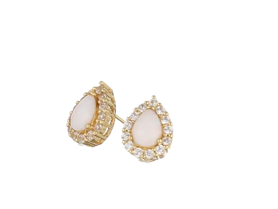 18k Yellow Gold Plated Sterling Silver Pear Shaped Created 8x6mm and Created White Sapphire Halo Stud Earrings