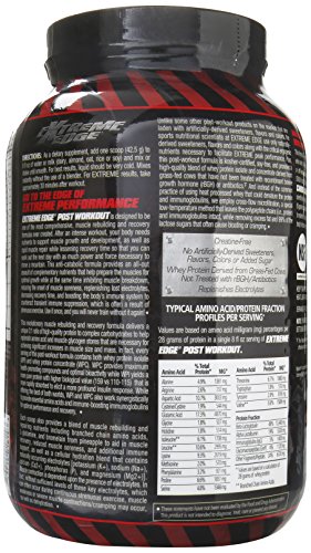 -. Binding : Health and Beauty -. Brand : Blue Bonnet -. EAN : 0743715018143 -. Feature : Provides 28 Gram of protein per serving / NSF Certified for sport / Creatine Free -. IsAdultProduct : 0 -. Label : BlueBonnet -. LegalDisclaimer : While we work to ensure that product information is correct, on occasion manufacturers may alter their ingredient lists.Actual product packaging and materials may contain more and/or different information than that shown on our Web site. We recommend that you do not solely rely on the information presented and that you always read labels, warnings, and directions before using or consuming a product. For additional information about a product, please contact the manufacturer. Content on this site is for reference purposes and is not intended to substitute for advice given by licensed health-care professionals such as physician,etc. Contact your health-care provider immediately if you suspect that you have a medical problem. Information and statements regarding dietary supplements have not been evaluated by the US FDA and are not intended to diagnose, treat, cure, or prevent any disease or health condition.Amazon.com assumes no liability for inaccuracies or misstatements about products. -. Manufacturer : BlueBonnet -. Model : 1814 -. MPN : 1814 -. NumberOfItems : 1 -. PackageQuantity : 1 -. PartNumber : 1814 -. ProductGroup : Health and Beauty -. ProductTypeName : HEALTH_PERSONAL_CARE -. PublicationDate : 2015-11-19 -. Publisher : BlueBonnet -. ReleaseDate : 2015-11-16 -. Size : 2.65 lbs -. Studio : BlueBonnet -. Title : Bluebonnet Extreme Edge Post Workout Powder, Atomic Chocolate, 2.25 Pound -. UPC : 743715018143