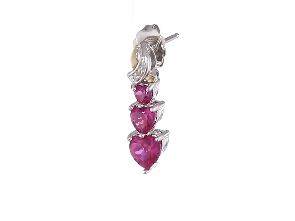 Sterling Silver and 14k Yellow Gold Diamond and Heart-Shaped Created Ruby Drop Earrings (0.01cttw)