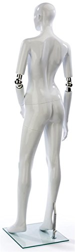 - Feature : Full body female mannequin is excellent for stores and retail / Stands at 69" tall with semi-abstract facial features, and fully detailed hands and feet / Arms are pose-able, with chrome joints at the elbows / Includes a weighted tempered glass base and a steel connecting rod, to keep the mannequin upright at all times / Displays2Go SKUNo.: FEMAAWH