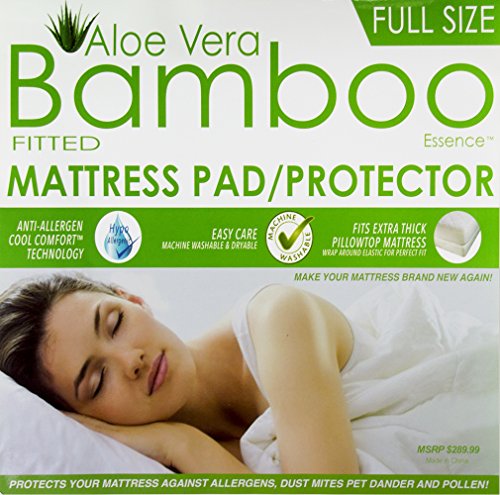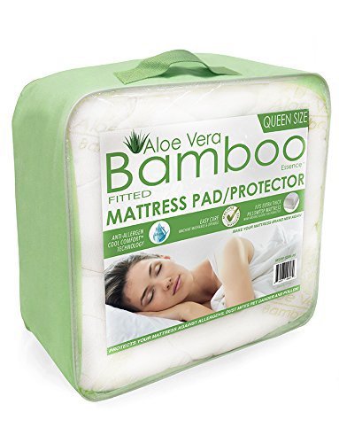 -. Brand : Homelux -. Color : White -. Feature : Queen size fitted mattress pad or protector with aloe vera and bamboo essence / Hypoallergenic because of anti-allergen Cool Comfort technology, protecting mattress from pollen, dust mites, pet dander and allergens / Easy care because it is machine washable and dryable / With wrap around elastic to perfectly fit extra thick pillowtop mattresses / Dimensions - 58 in x 80 in (16 in pocket) -. Label : Homelux -. Manufacturer : Homelux -. ProductGroup : Home -. ProductTypeName : HOME_BED_AND_BATH -. Publisher : Homelux -. Size : Queen -. Studio : Homelux -. Title : Cool Comfortable Hypoallergenic Aloe Vera Bamboo Essence Fitted Mattress Pad Protector with Deep Pockets