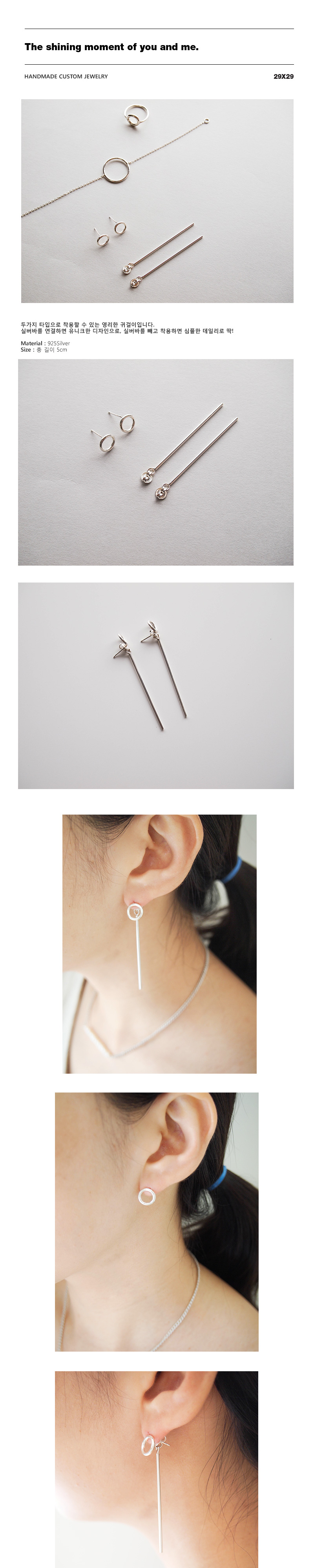 원형장식과 바 장식 풀세트로도 착용이 가능한 멀티, 투웨이 귀걸이입니다.