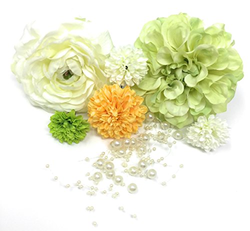 -. Title : 卒業式 結婚式 成人式にダリアとマム,ラナンキュラスのアーティフィシャルフラワー髪飾り7点セット パールシャワー付き