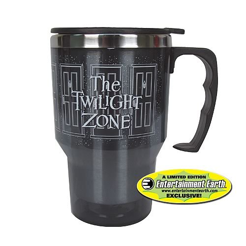 - Quench your thirst for more Twilight Zone! Exclusive 14-ounce The Twilight Zone Doorway Travel Mug. Crafted of durable plastic and stainless steel.