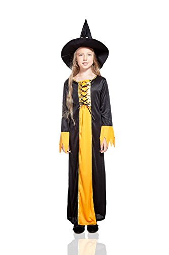 -. Feature : Child costume of dark fairy / witch / enchantress / vampiress by La Mascarade Company. The bodice of the dress is made of stretchy biflex fabric, and the skirt is crafted from no stretch polyester fabric with glossy smooth surface. / The three piece set includes midi dress, wide waist piece and pointed hat. Complete the look with ballet pumps or Mary Janes, magic wand and book of spells. / Great dress up outfit for gothic / horror themed parties, Halloween, costume parties, celebrations, role-playing and cosplay festivals, stage performances and school plays. / SIZE All our fancy dress costumes are available in 3 sizes: for 3-6 years (43"- 47" / 110-120 cm), 6-8 years (47"- 51" / 120-130 cm) and 8-11 years (51"-55" / 130-140 cm). / Buy with confidence! We are sure about high quality of our products. That's why we offer 30 day money back guarantee on all costumes. If you don't like the costume for any reason, return it within 30 days and get a full refund.