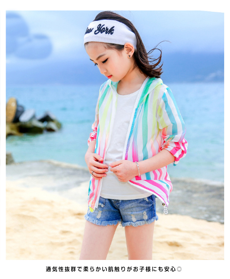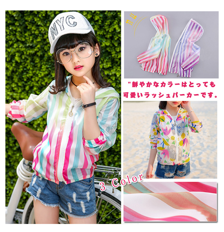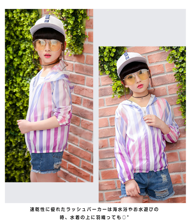 | 鮮やかなカラーはとっても可愛いラッシュパーカーです。軽量でコンパクトに収納できるから持ち運び便利で、旅行にバッチリ通気性抜群で柔らかい肌触りがお子様にも安心◎昼間の日焼防止対策だけではなく、夕方や冷房での冷え防止にもピッタリ速乾性に優れたラッシュパーカーは海水浴やお水遊びの時、水着の上に羽織っても◎ | |