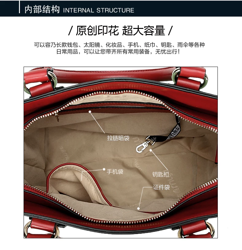 沐鱼 Style: Handbag Texture: PU Material Technology: soft surface Carry parts Type: The soft Closed way: zipper Internal Structure: zipper pocket cell phone pocket document bag Color: Red Fairy Monee Whether the sandwich: None Bags Hardness: Soft Whether folding: No Condition: New Applicable scene: Leisure Bag size: medium (the longest side 30-50cm)