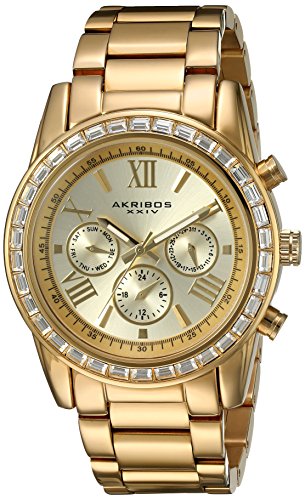 -. Title : Akribos XXIV Women's Swiss Quartz Swarovski Crystal Bezel With Gold-Tone Dial on Gold-Tone Stainless Steel Bracelet Watch AK943YG