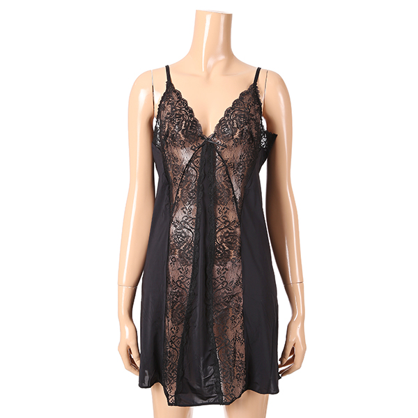 블랙 바탕에 가슴부터 세로로 시스루 레이스로 포인트를 주어