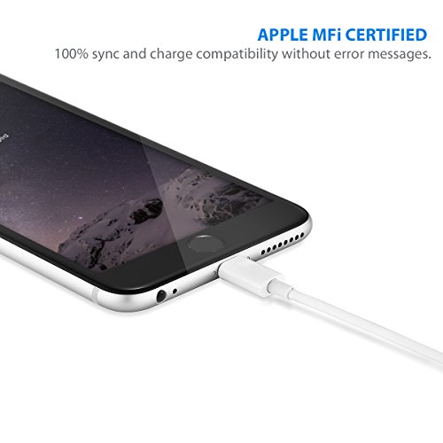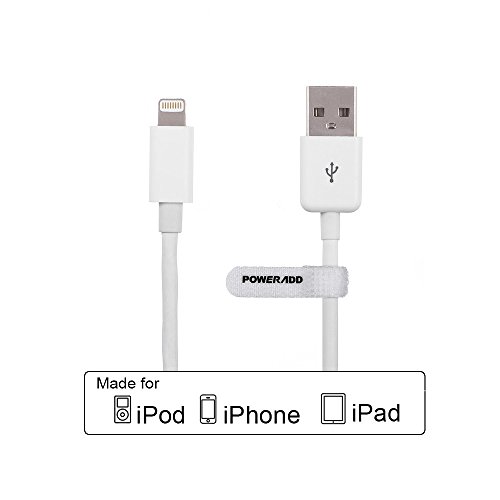 [Apple MFi Certified] Poweradd 8-Pin Lightning to USB Cable (6.6ft / 2m) Charge and Sync Cable Cord for iPhone 6s 6 Plus 5s 5c 5, iPad Pro / Air / Mini / 4th gen, iPod touch / nano - White