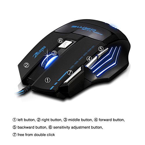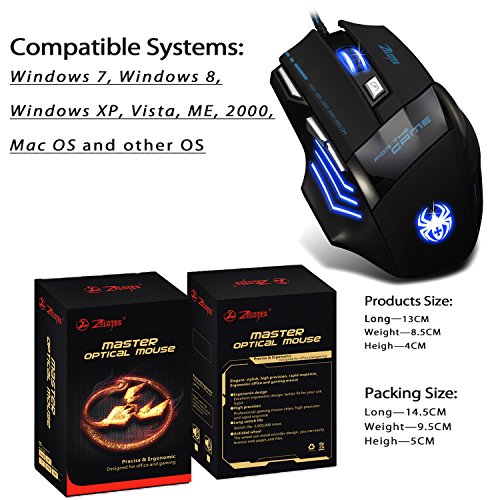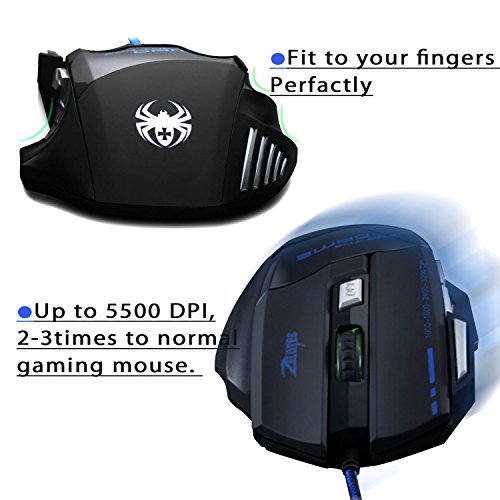 Wired Gaming Mouse Zelotes Professional LED 7 Button T80 Wired USB Optical Mice Adjustable DPI 5500 DPI/3200 DPI/2400 DPI /1600 DPI /1000 DPI for Pro Gamer Notebook PC Laptop Computer (Black)